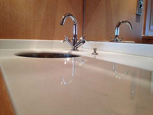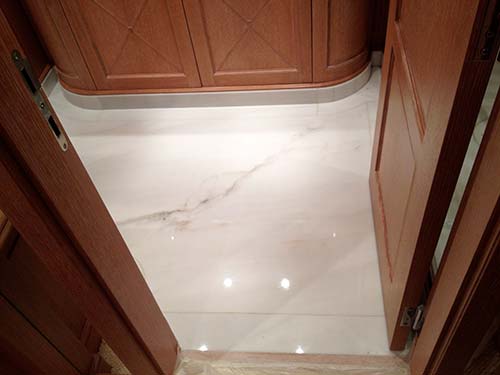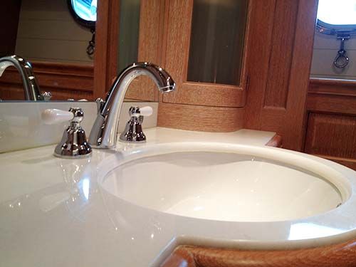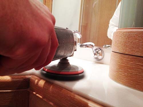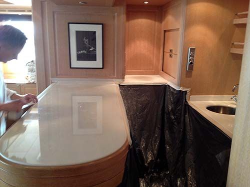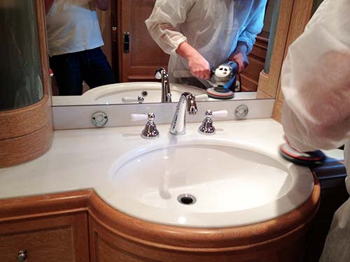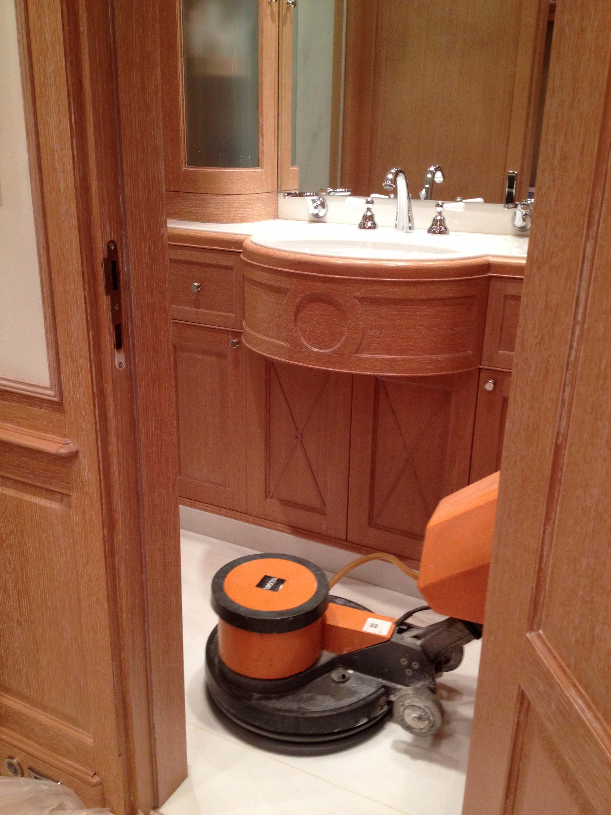 Polissage et cristallisation de marbre sur un yacht à Nice, du sol à la vasque