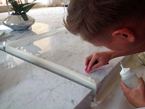 Le temps dépend de l’état initial, du type de marbre, du nombre de taches et de la complexité des arêtes. Sur un plateau de table, la précision est plus importante que la vitesse, car le moindre défaut se voit immédiatement.