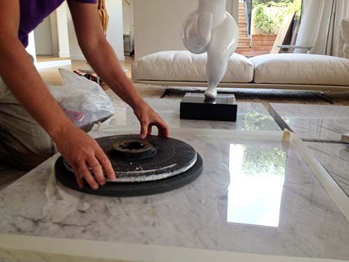 Une fois le ponçage terminé, on peut rendre au marbre sa profondeur. Le polissage est une étape de mise en valeur, mais aussi de confort d’usage : une surface bien finie retient moins les salissures et se nettoie plus facilement.